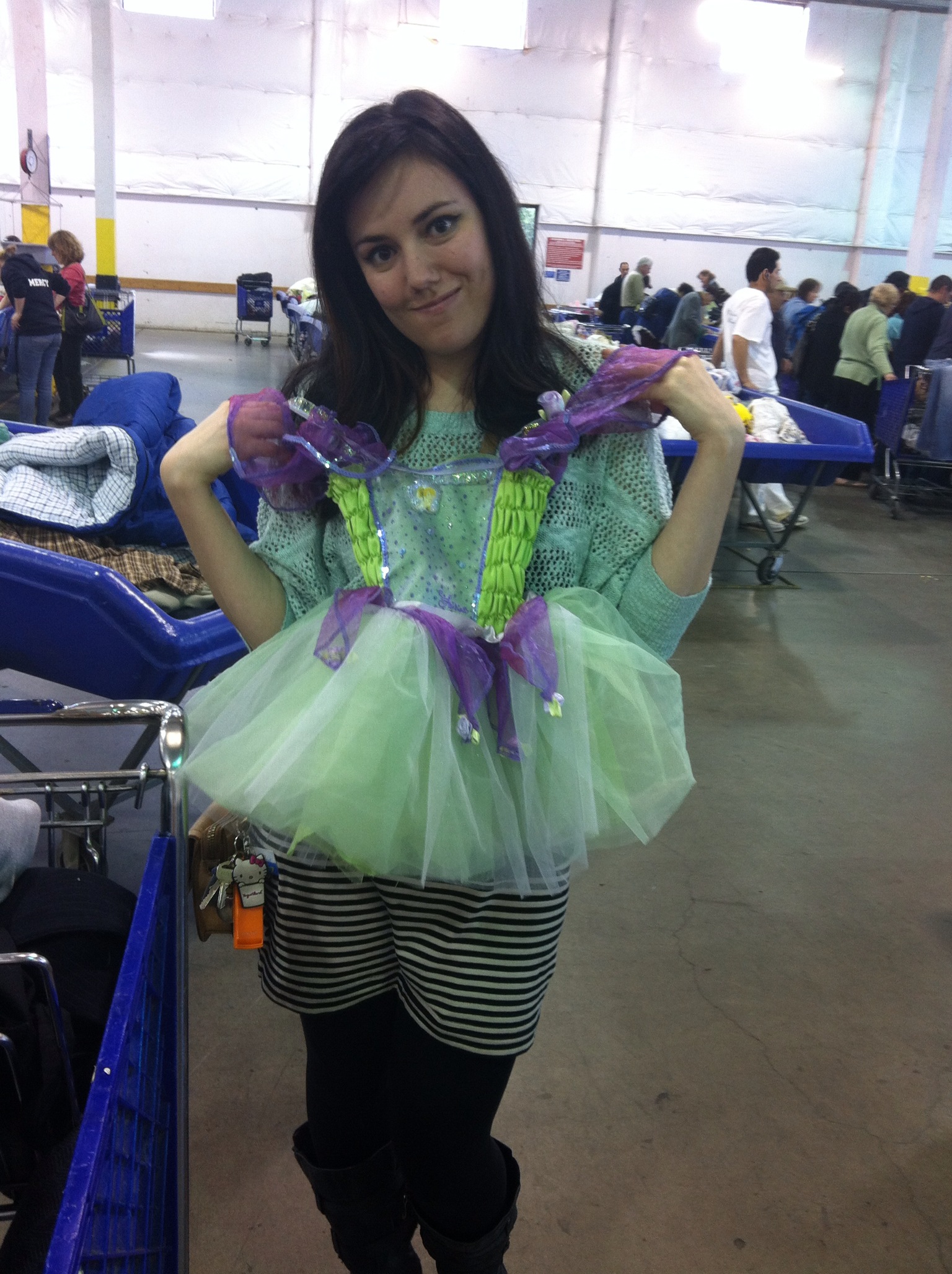 A couple weeks ago, some inspiration came by way of a reader recommendation that I check out this hilarious blog called “Bins Babes”. These fashion comedians recreate look-alikes to high fashion runway outfits out of the scrapings of the Goodwill Outlet bins. For those of you who have never been to a Goodwill Outlet, it is a smelly warehouse full of troughs of items that were rejected at regular Goodwill stores. Shoppers hoard whatever they can find into shopping carts as they dig through these piles of clothing and assorted goods, weigh it in a scale, and then pay per pound for their items.