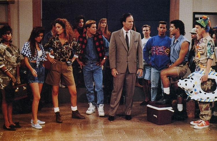 Right out of early 1990’s so-cal, one can’t help but scratch their head at the boxy, loose-fitting duds of the sitcom superstars we grew to know and love. In the early nineties, pants were still hitting at the natural waistline, and even had pleats! (oy vey) Bulky structures, lots of denim, and hoodless sweatshirts were holding on to their hairsprayed 1980’s roots.