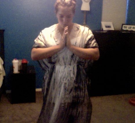 Laura says: Sooo here’s my outfit! It’s a dress I recently found at My Sister’s Closet, a designer consignment shop. It is Lotta Stensson. This dress still had tags on it that it retails for $350. I got it at the ripe dime of $58. It is also quite risque aka translucent, so I purchased a $28 white Free People slip to throw underneath. $86 investment worth $378; I’ll take it!