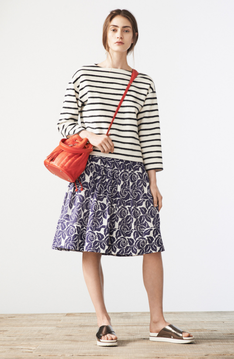 Elizabeth and James is the second of two lines. It is named after their siblings, and is the younger brand to their luxury line The Row. Here are a few of my favorite looks from the Resort 2015 collection. The good news is that the following eye candy is part of the less expensive label. The bad news: you still may have to “resort” to looking and not touching, because even the midi top is going to cost upwards of a couple hundred bucks.